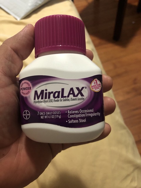 Taken orally, these laxatives help with constipation by increasing the moisture content in the stool, helping to soften. You just pour a single serving into the MiraLAX cap and mix it into a glass of water. Osmotic-type laxatives such as GoLYTELY, GlycoLax, and MiraLax Suppositories such as docusate (Microenema), bisacodyl (Dulcolax Suppository), and sodium phosphate (Fleet Enema). If you have diabetes, ask your doctor first because these products can cause electrolyte imbalances. Wolf recommends the osmotic laxative MiraLAX or a generic version. In patients with opioid-induced constipation, an osmotic laxative (or docusate sodium to soften the stools) and a stimulant laxative is recommended.