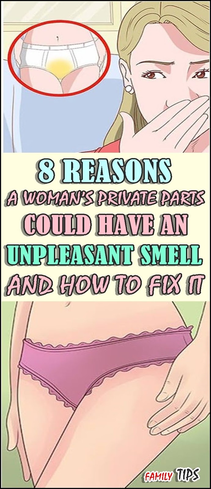 Following factors often leads to the production of unpleasing and repelling odors in the groin area: The groin area is generally covered (hence not exposed to sun or air at all times). That does not help at all. Vaginas have natural odors, and each woman's odor is different. While poor private part hygiene can be the cause, excessive washing is not the solution. What could this bed I am conserned. Bacterial vaginosis The most common explanation for an unpleasant vaginal odour is an infection called bacterial vaginosis (BV), which produces a fishy smell.
